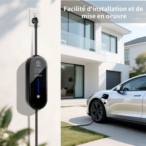 KLARGRID Mobile Wallbox/Ladestation 11kw [3-phasig|5m/7m|6-16A] mit Einstellbarer Ladeleistung, Ladekabel CEE 16A auf Typ 2 und EV Ladegerät für Model Y/3, ID.3/4/5, MG4, EX30, e-up, e-tron, Zoe und andere EV